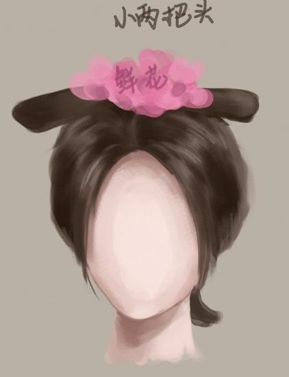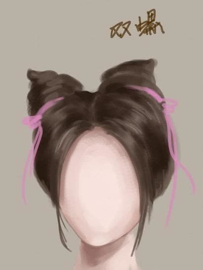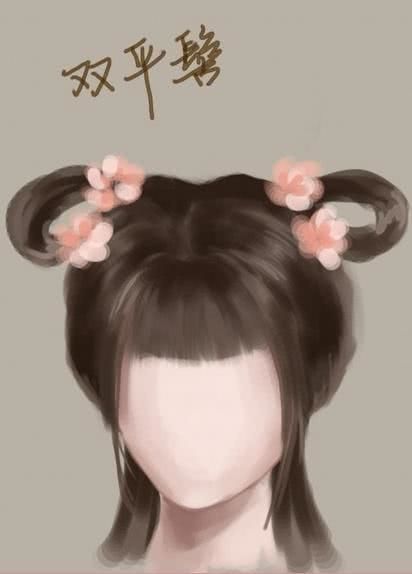 ★双平髻 丱发★(丱拼音guan四声) 双平鬟属于双挂式之梳编法,其梳编法是将发平分于两侧。再束结成环,使其对称而自平垂。挂于两侧。这种发式在仕女图中颇为多见,多用于未婚少女或儿童。 丱发为儿童或未婚少女之发式,其梳编法是将发平分两股,对称系结成两大椎,分置于头顶两侧,并在髻中引出一小绺头发。使其自然垂下。