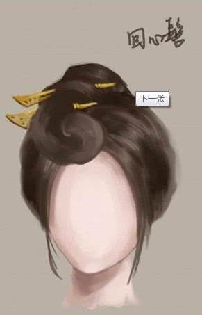 ★双刀髻、惊鹄髻★ 双刀髻其梳编法是将发往上拢结于顶,再反绾成双刀欲展之势。据《妆台记》记载:唐武德中,宫中梳半翻髻。又梳反绾髻,贞元中梳归真髻,贴五色花子。皆类似反绾式的发型。 惊鹄髻也是反绾式之一。其梳编法是将发拢上反绾,成惊鸟双翼欲展之势,生动而有趣。据〈中华古今注〉记载:魏宫人好画长眉,令作蛾眉惊鹄髻。