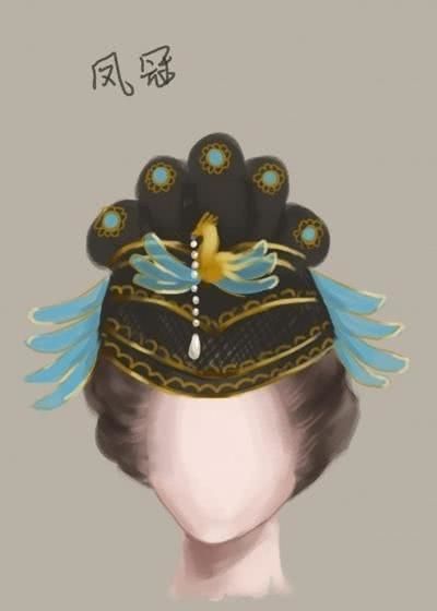 凤冠:此图录自〈唐懿德太子墓石刻〉之凤冠,为古代后妃及诰命夫人之礼冠,冠上饰以凤鸾,真珠玉翠,多于大礼时戴用。