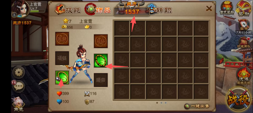 1、提升等级,主线关卡任务完成后得到经验值提升等级,增加大量属性并且解锁新技能、武器等增加战斗力。