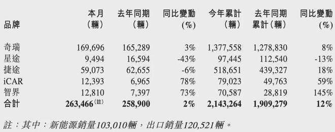 11月2日,奇瑞汽车发布10月销量数据,为上述这份三季报增添一份有力注脚。