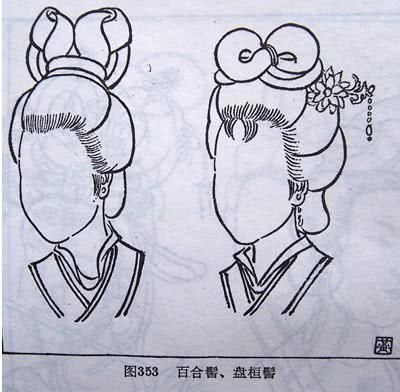 ★百合髻、盘桓髻★ 百合髻其梳编法是净发分股盘结,并合叠于头顶。如图所示。 盘桓髻其梳编法是将发蟠曲交卷,盘叠于头顶上,稳而不走落,称为盘桓髻。据《中华古今注》记载:长安妇女好为盘桓髻,到今其法不绝。