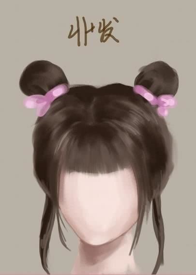 ★双平髻 丱发★(丱拼音guan四声) 双平鬟属于双挂式之梳编法,其梳编法是将发平分于两侧。再束结成环,使其对称而自平垂。挂于两侧。这种发式在仕女图中颇为多见,多用于未婚少女或儿童。 丱发为儿童或未婚少女之发式,其梳编法是将发平分两股,对称系结成两大椎,分置于头顶两侧,并在髻中引出一小绺头发。使其自然垂下。